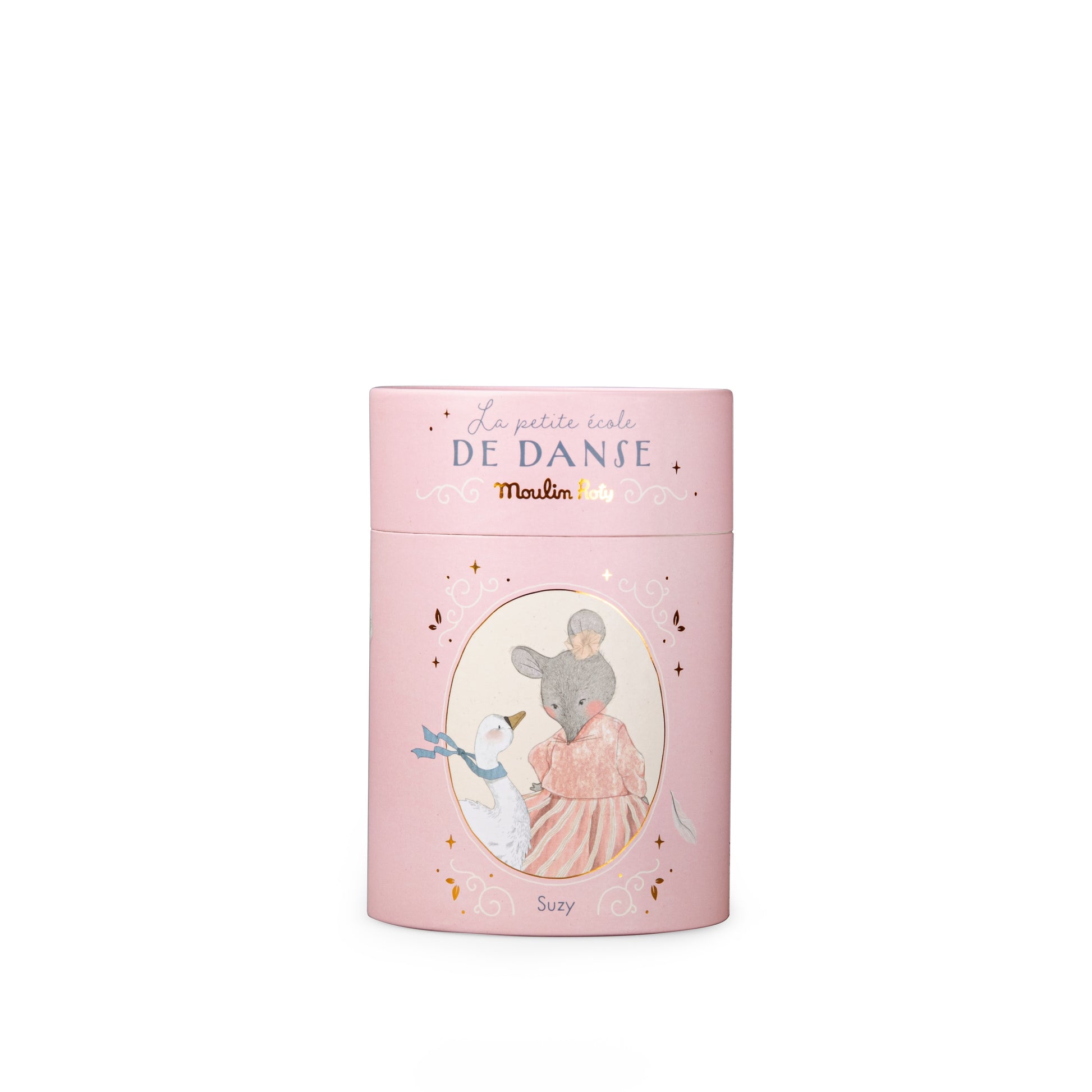 Bola de nieve musical con el pequeño ratón y su ganso que celebran en medio de las lentejuelas holográficas