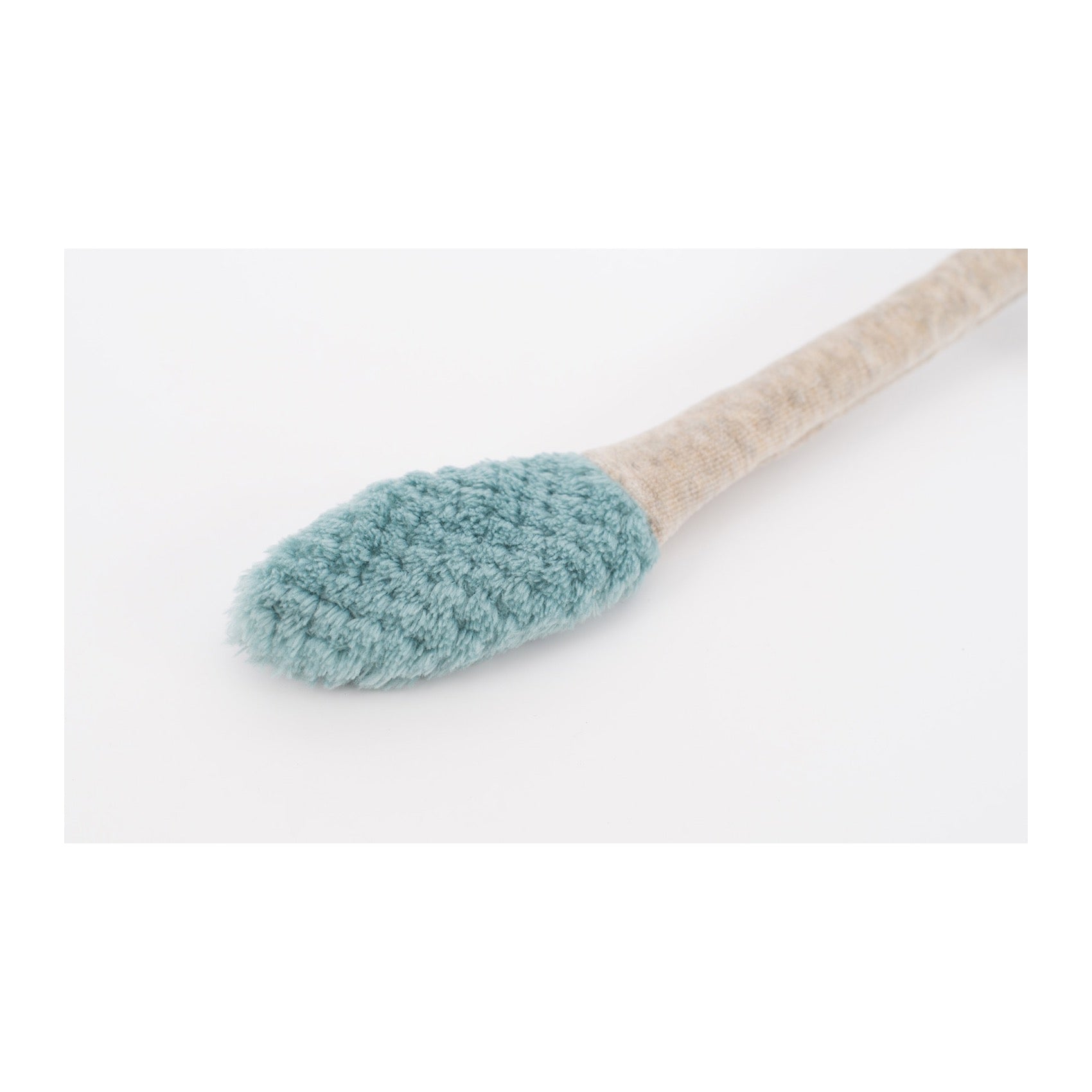 Elefante de peluche. En tonos beige y azul jaspeados, este gigante de la sabana ha sacado a relucir sus accesorios más bonitos: un sonajero y un papel chirriante.
