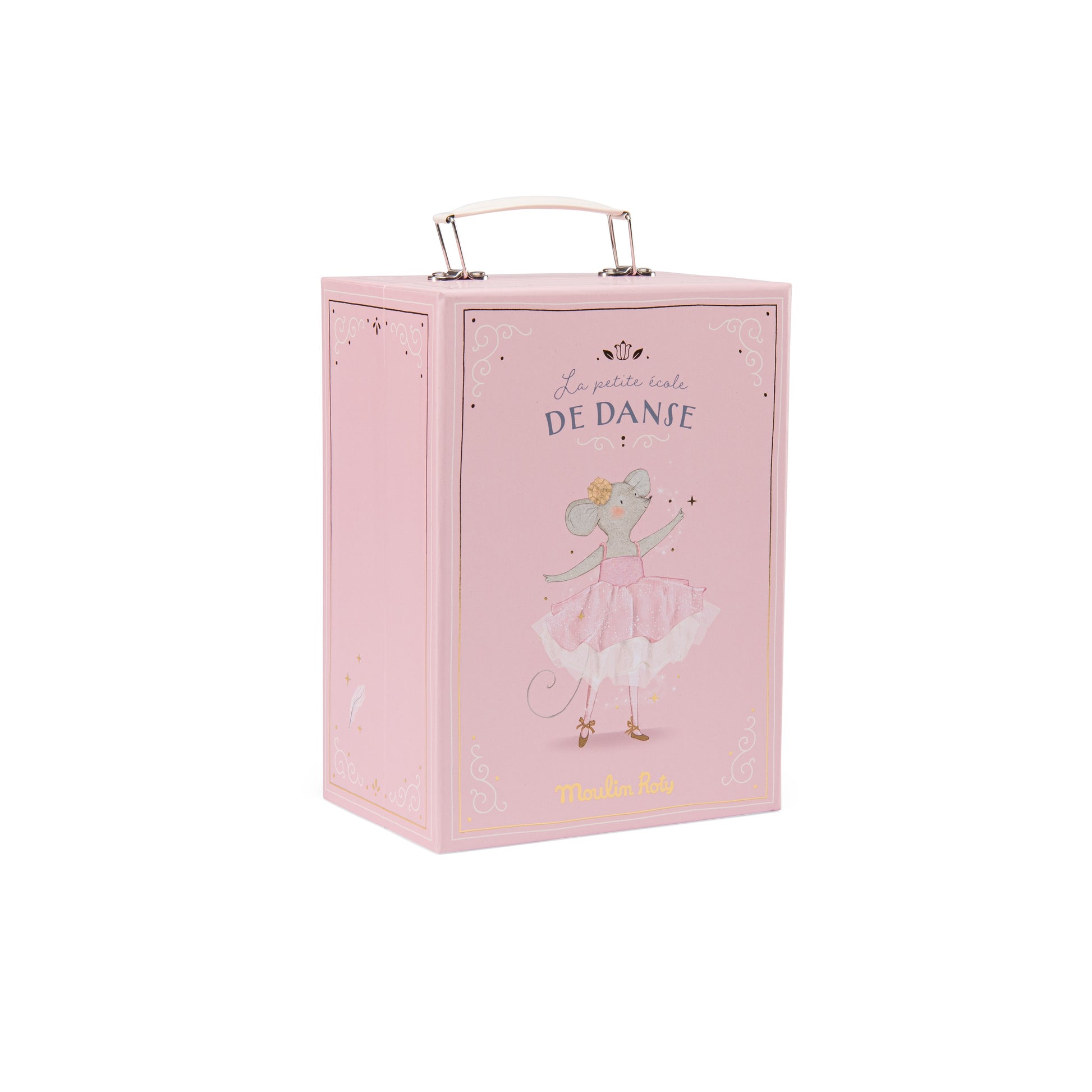 Maletín armario con Ratoncita bailarina, tiene espejo integrado que incluye 3 vestidos tutú (estrella, nácar, lujo). Pertenece a la colección La pequeña escuela de danza.