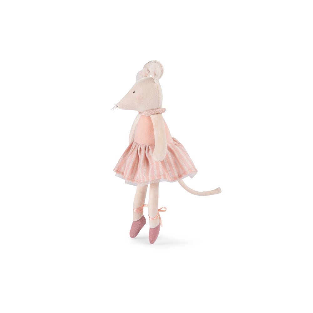 Anna la ratona, de terciopelo, con una dulce cara bordada y mejillas delicadamente empolvadas. Presentado en caja regalo redonda rosa y con un hermoso estampado..