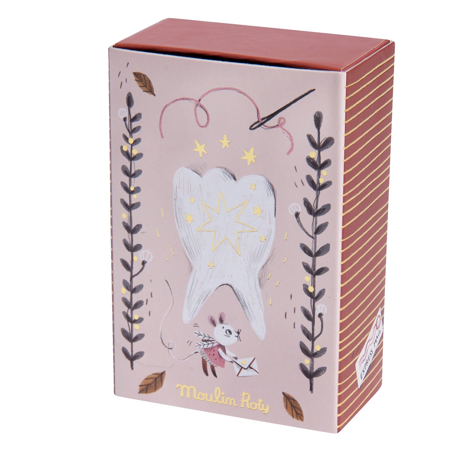 Hada ratoncita. ¡La pequeña hada sostiene en su mano un sobre de velcro con un interior de flores, para guardar los dientes de leche de los niños! Lleva un vestido de lino con alas en la espalda, su rostro está bordado y sus orejas son de suave terciopelo.